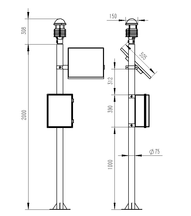5.兩米碳鋼支架,頂部無(wú)需法蘭盤(pán)可直接套接傳感器